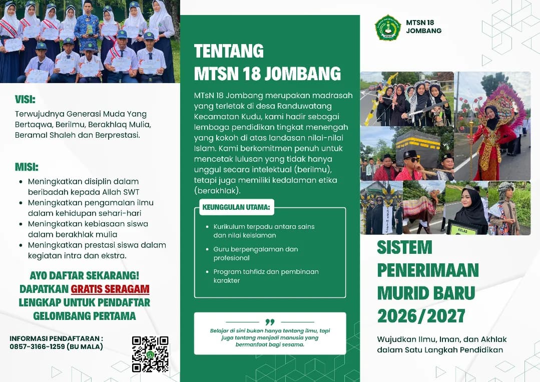 Penerimaan Murid Baru Madrasah (PMBM) MTsN 18 Jombang Tahun Pelajaran 2026-2027